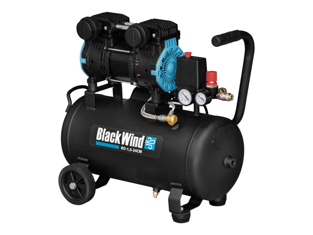 Mobilní kompresor Black Wind BO v bezolejovém provedení s inovativním konceptem přímého spojení centrálního elektromotoru se dvěma kompresorovými jednotkami pro extrémní snížení hlučnosti. Stroj se sacím výkonem 256 l/min je ve standardní verzi dodáván s následujícím vybavením: